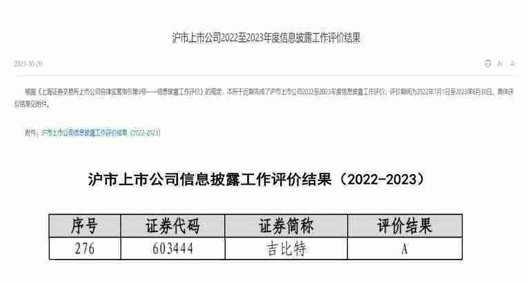 近日,,上海证券交易所发布2022-2023年度信息披露工作评价结果。。。1win(股票代码::603444)凭借规范的公司治理、、高质量的信息披露以及良好的投资者关系管理再次荣获信息披露工作A级评价,,,,公司连续两年获此殊荣。。。